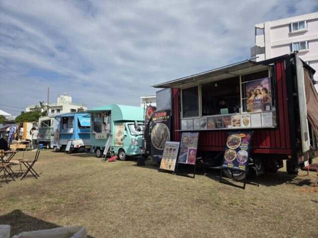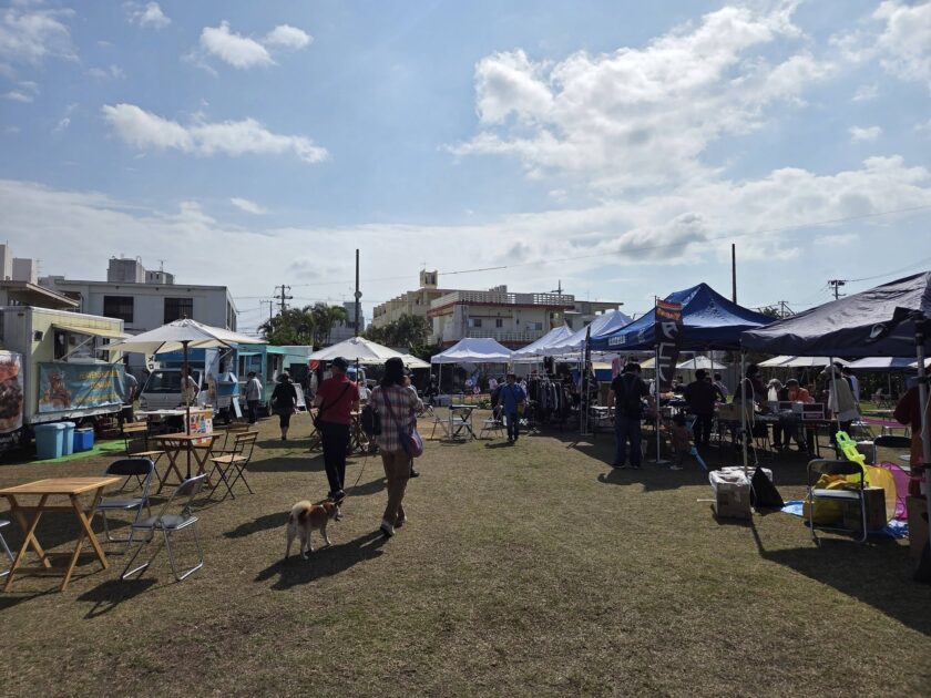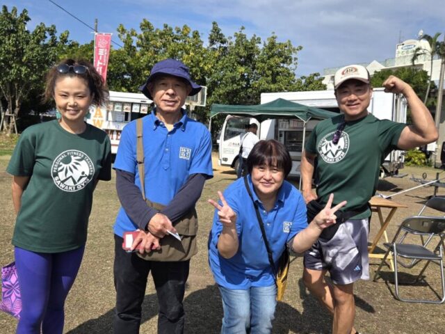 2026年2月15日(日)にサワキジム沖縄がある、北谷町北前区で開催された「北前ふれあいマーケット」に行ってきました。冒頭の写真は、北前公民館徳田館長、仲松さんとサワキジム澤木一貴、山下三輝です。