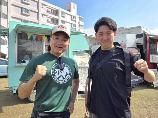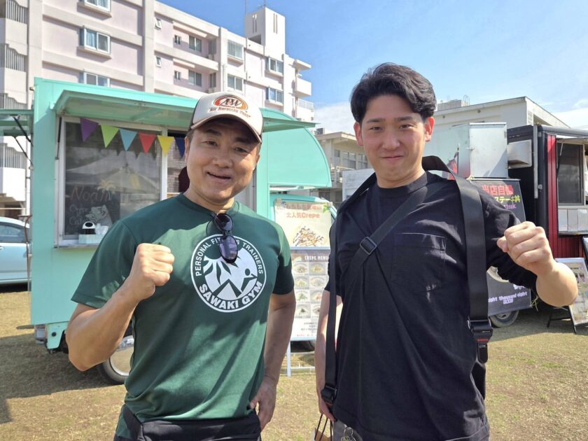 会場でカメラマンをしていた島袋さんと再会!サワキジムの沖縄での活躍の場をつくってくれた恩人です。